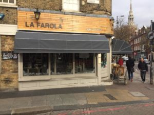 Dutch canopies – Islington 2 extended projection Dutch Canopies for an old customer, La Farola in trendy Upper St, Islington. Client: La Farola Date: November 2018