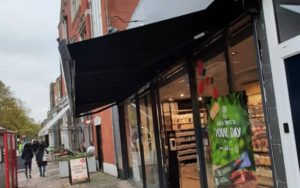 Folding arm awning – Chiswick 7m Weinor awning fitted for a Planet Organic branch in Chiswick – we have another 5 sites in the planning stages. Client: Planet Organic Date: October 2020